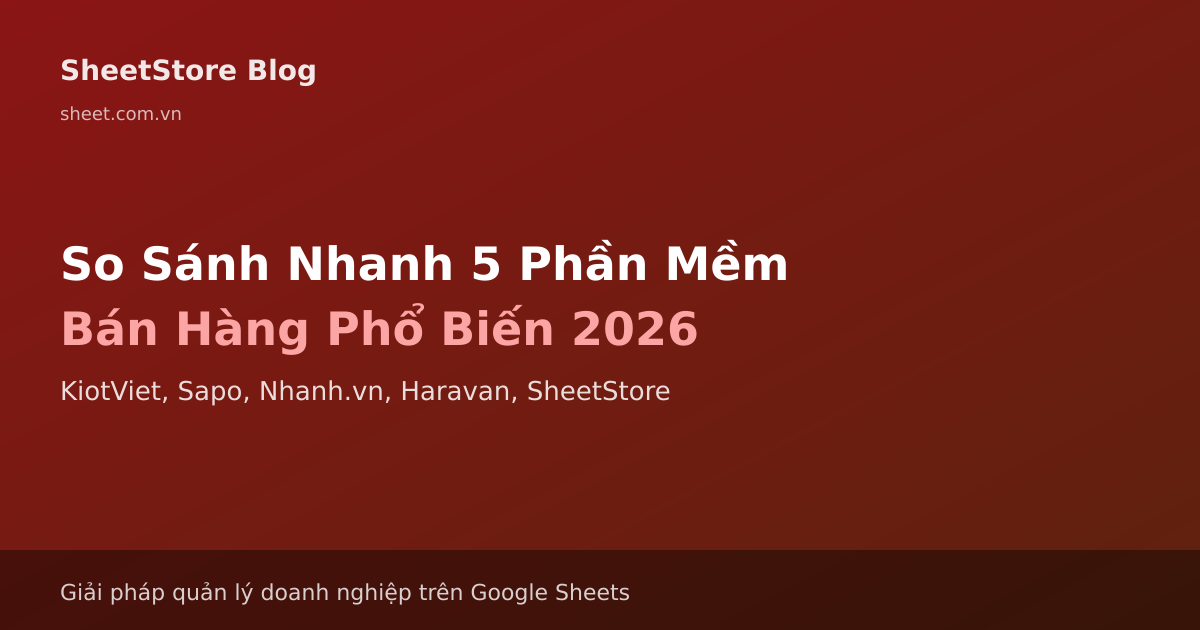 So sánh nhanh 5 phần mềm quản lý bán hàng phổ biến nhất Việt Nam 2026: KiotViet, Sapo, Nhanh.vn, Haravan, SheetStore. Bảng giá, tính năng, đánh giá người dùng và khuyến nghị theo loại hình kinh doanh.