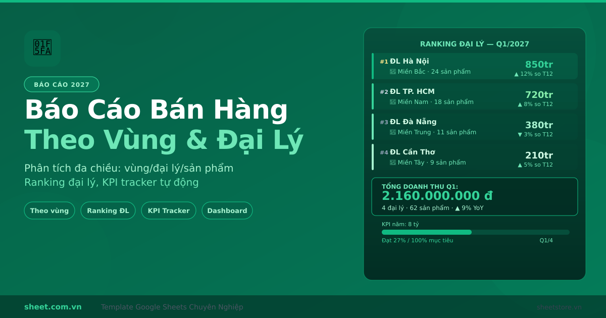 Template Google Sheets Báo Cáo Bán Hàng Theo Vùng và Đại Lý 2027: Phân Tích Đa Chiều