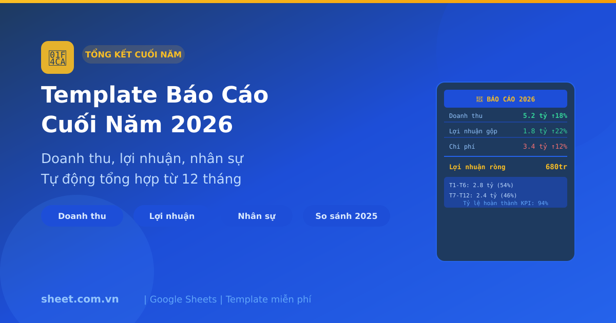 Template Google Sheets Báo Cáo Cuối Năm 2026: Tổng Kết Doanh Nghiệp Toàn Diện